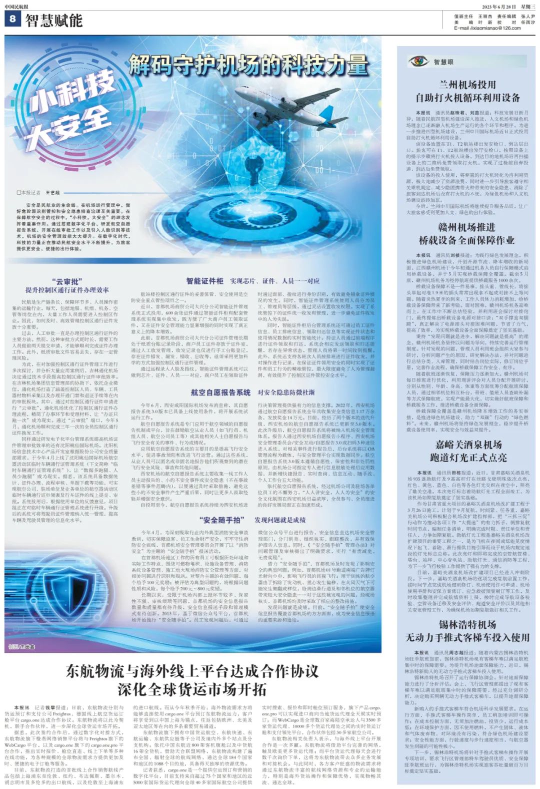 (本文刊载于中国民航报2023年6月28日8版)《智慧民航》导刊每周三