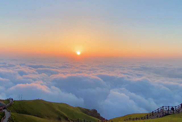 ●Tips:这是一条为适合体力不太好、缺乏徒步经验的朋友们准备的入门级路线,也是最经典的景区观光线。一路上设施完善,可以选择坐索道或全程徒步。坐索道的话可以1天打卡完景点,但建议在金顶住一晚感受武功山梦幻的星空和日出。