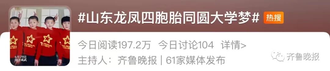 原标题:《山东四胞胎高考全过线!老二617老三614!网友:别人家的孩子,还是4个》