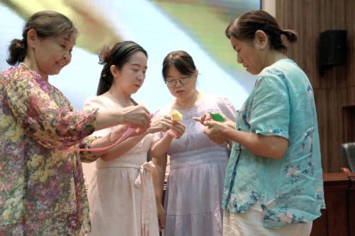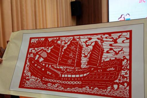 家庭教育公益讲师彭丽教大家制作泡沫纸玫瑰花。参会人员制作玫瑰花将作为礼物送给乡村留守儿童。女性公益人才欣赏了蔡秋容社区公益服务中心剪纸团队多幅剪纸作品。