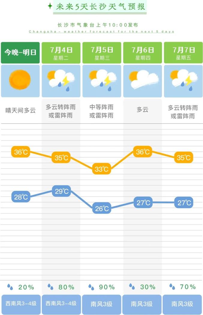 长沙暑热持续,雨水再袭