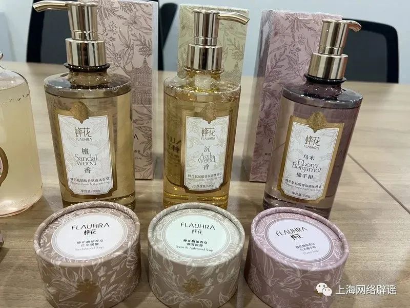 有消费者称,在部分上海制皂的蜂花产品上,英语标签翻译不再是以往的“bee & flower”(直译:蜂与花),而是“FLAUHRA”。同时,很多产品的包装、形态和蜂花檀香皂截然不同了。