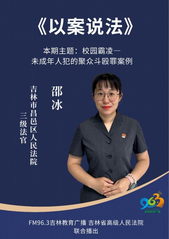 由吉林省高级人民法院和FM96.3吉林教育广播联合打造的普法直播节目《以案说法》于每周二、周四7点30分到8点,在FM96.3播出,法官做客直播间,为您以案说法。