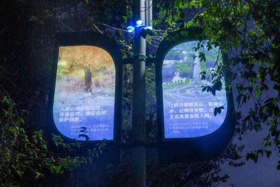 “一道残阳铺水中,半江瑟瑟半江红。爸爸,这个上面都是古诗啊。”“是啊,照片配的还都是中心的风景照片。”一对父女被主题灯箱上的古诗句所吸引,父亲一边走,一边教孩子读古诗。“这个设计确实不错,既能让大家看到东风的美景,还能学到关于生态的古诗句,尤其是对孩子来说非常有意义。”孩子的爸爸张先生告诉记者。