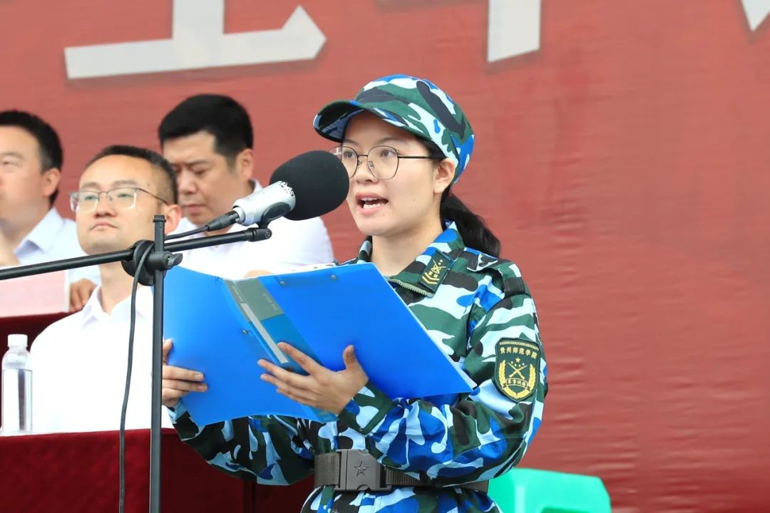 ▲邹晓青宣布营干部任命伴随着雄壮的国歌和冉冉升起的五星红旗,动员大会拉开了序幕。随后,韦维宣布军训团组织机构及名单;邹晓青宣布营干部任命。