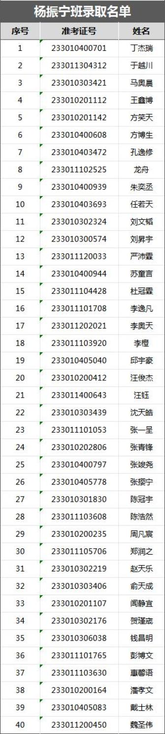 7月5日,合肥市第一中学官网发布通知,公布2023年杨振宁班、强基班录取名单。今年杨振宁班、强基实验班均属提前招生,杨振宁班招收40人,班级设在瑶海校区。强基实验班共招90人,其中,滨湖校区60人,瑶海校区30人。