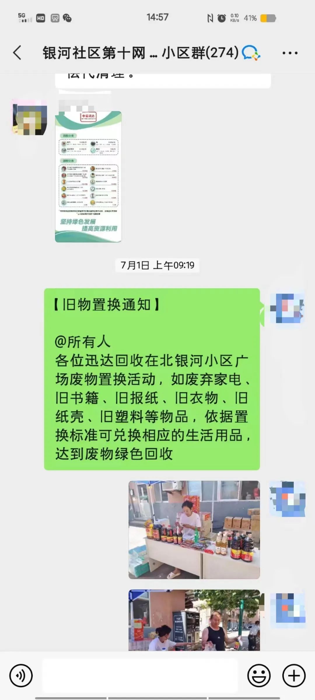 活动前期,社区采用微信群发通知及线下讲解相结合的方式,广泛宣传“以物易物”置换活动,倡导居民将旧物置换成物超所值的油盐酱醋等生活用品。以