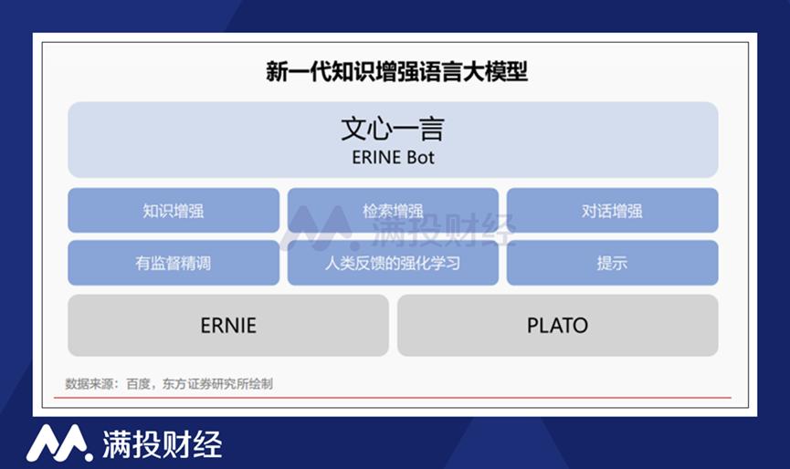 具体来看,根据百度文心一言的新闻发布会介绍,文心一言其背后的技术是基于百度ERNIE及PLATO系列模型的基础进行研发,其大模型的训练数据包括万亿级网页数据、数十亿的搜索数据和图片数据、百亿级的语音日均调用数据,以及5500亿事实的知识图谱等。文心一言具备五大能力,分别是文学创作、商业文案创作、数理逻辑推算、中文理解、多模态生成能力。根据测试,在文学创作方面,“文心一言”能够对《三体》进行续写,并能回答事实相关问题。在商业文案创作方面,能够帮助公司起名字、撰写商业新闻稿等。数理逻辑推算方面,面对“鸡兔同笼”这种经典逻辑思维题,能够纠正错误,给出正确题目的解题方法与步骤。中文理解方面,能理解“洛阳纸贵”背后的经济学原理、写出藏头诗等。多模态生成能力方面,可以根据输入的文本,生成图片或者是视频。