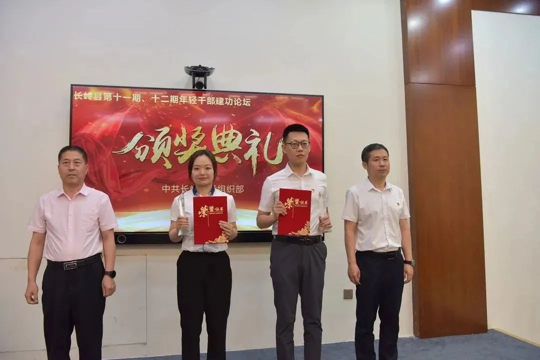 论坛以无记名投票方式,评选出柴新阳(右2)为本期“论坛之星”。长岭县委常委、组织部长张亚昕为“论坛之星”颁发奖杯和证书。