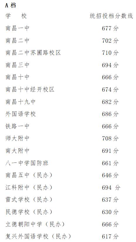 原标题:《南昌市2023年城区第一批次普通高中统招投档分数线公布》