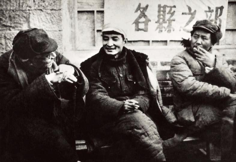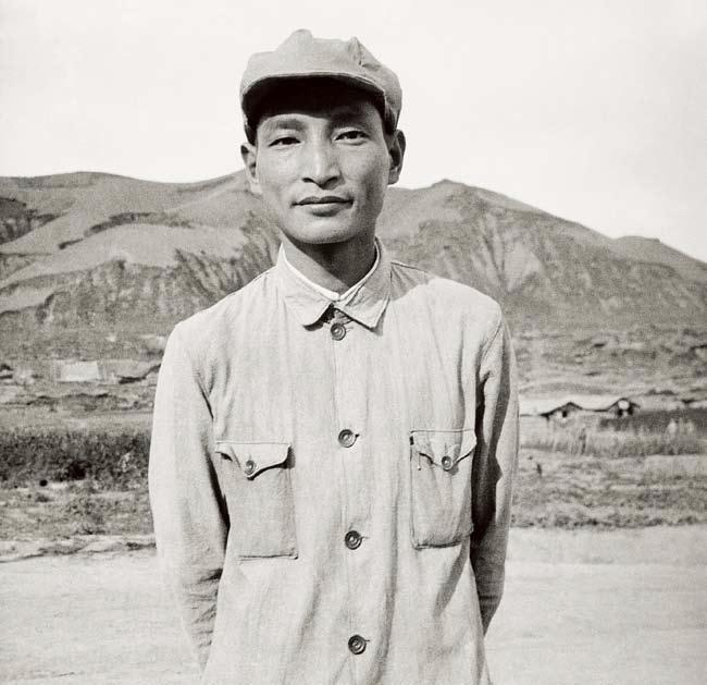 △ 1943年底,陈云和毛泽东、林伯渠参观陕甘宁边区农业生产展览会。