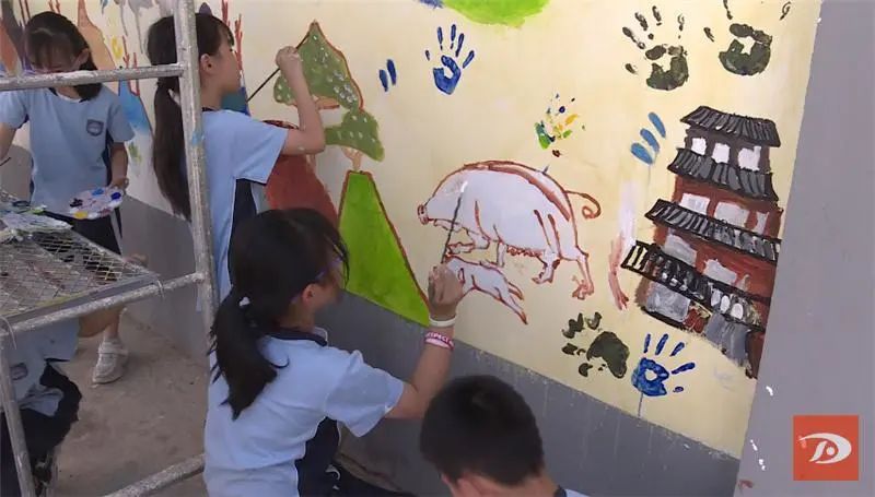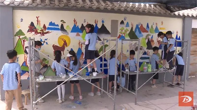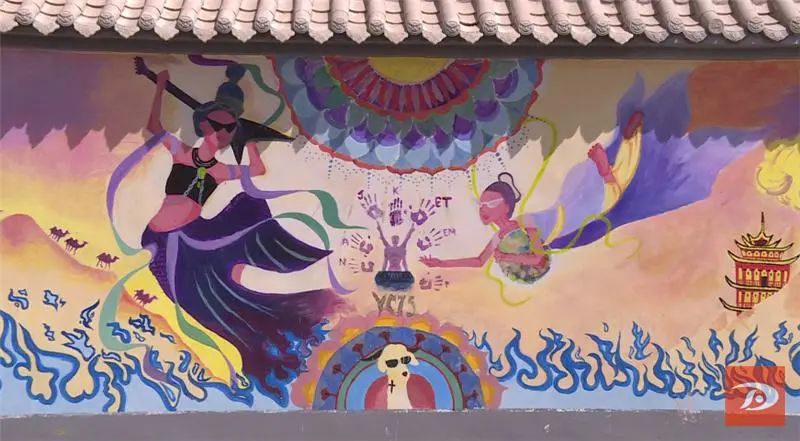 7月5日上午,来自重庆德普外国语学校的师生在敦煌市莫高镇甘家堡村客栈一条街开展了“我是敦煌守护者”墙绘涂鸦研学活动。