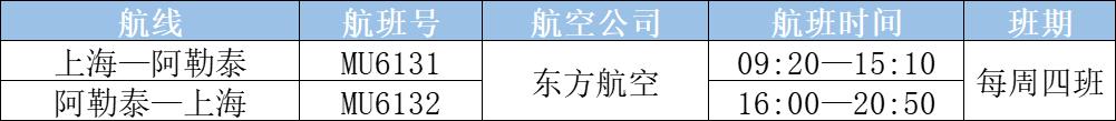 上海直飞阿勒泰往返航线