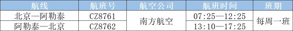 北京直飞阿勒泰往返航线