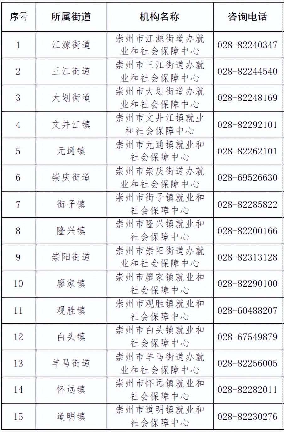 经办机构:崇州市人力资源和社会保障局