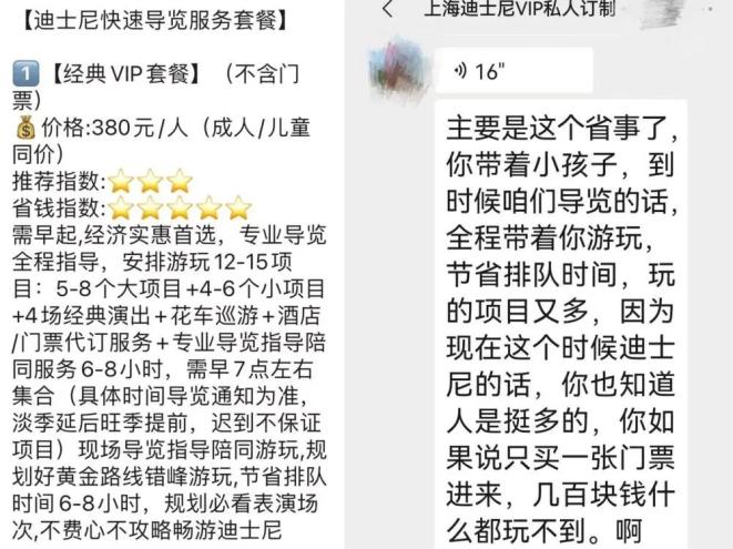 为了高效游玩迪士尼,在第三方平台上购买导游服务套餐的人其实并不在少数。