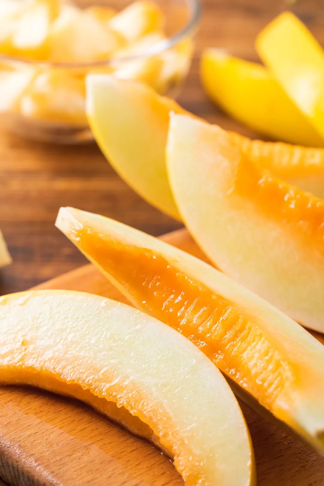 金黄色的蜜瓜对半切开,丰盈的汁水裹着细嫩的果肉开始撩拨人心, 又滋润又甘甜,不愧是来自沙漠中的“金色奇迹”,一入口,你便能感受到那份清新与甜蜜。