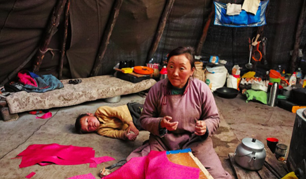 我:“三个女儿都去查干诺尔上学了,明年托克寻六岁,也要去上学了。他那么小就要离开家,离开你,你会想他吗?”