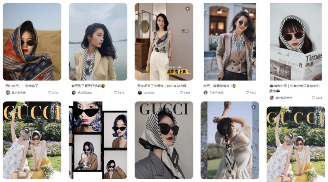 年轻人也爱上丝巾了?(图/小红书截图)显然,效仿大妈用丝巾拍照只是一个开始。