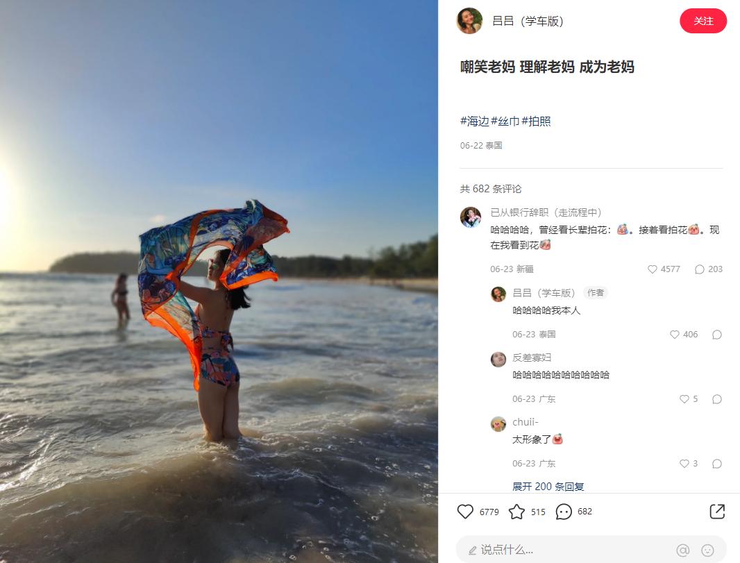 丝巾,真正的拍照神器。(图/小红书@吕吕(学车版))拥有相似命运的还有大妈钟爱的“花海”背景墙。与花海的零距离接触,曾是大妈们的专属美。