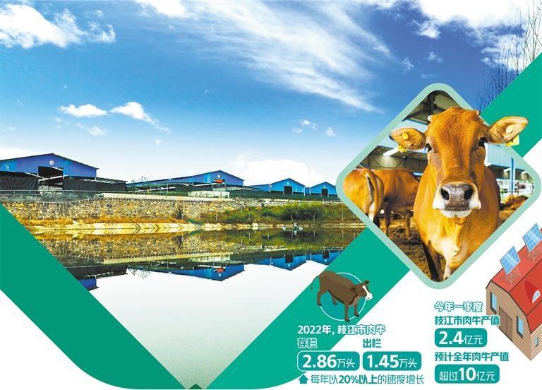 统计显示,在龙头企业的带动下,枝江市去年肉牛存栏2.86万头,出栏1.45万头,每年以20%以上的速度增长。今年一季度,枝江市肉牛产值达到2.4亿元,预计全年肉牛产值将超过10亿元。