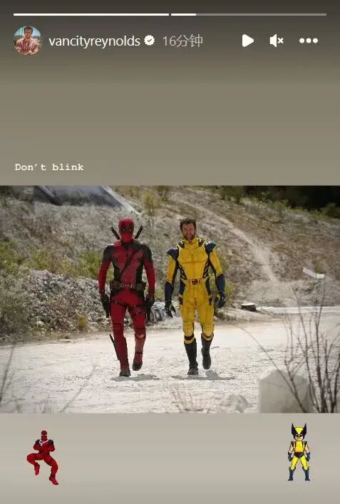 瑞恩·雷诺兹Instagram快拍分享[死侍3]超糊剧照,休·杰克曼饰演的金刚狼以经典黄色战袍亮相。