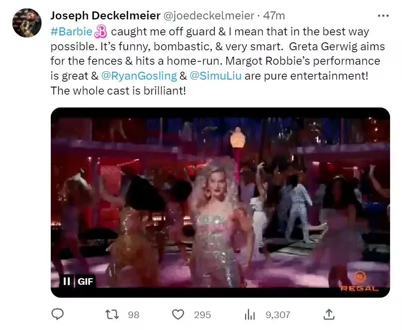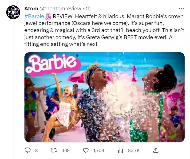 ▷ [芭比]社交媒体口碑解禁[芭比]社交媒体口碑解禁,口碑表现不俗。