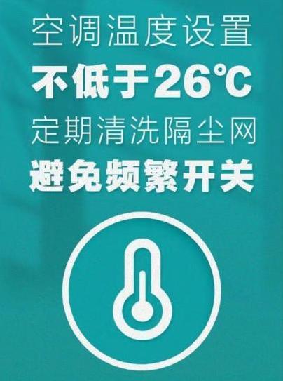 空调使用时,夏季温度设定在26℃~28℃,冬季设定在16℃~18℃。不论制冷模式室温调高1℃,还是制热模式室温调低2℃,均可省电10%以上。同时,降低室内外温差,也可以减少患感冒的几率。出门前3分钟关闭空调,不影响感官体验,还能减少电力消耗与温室气体排放。