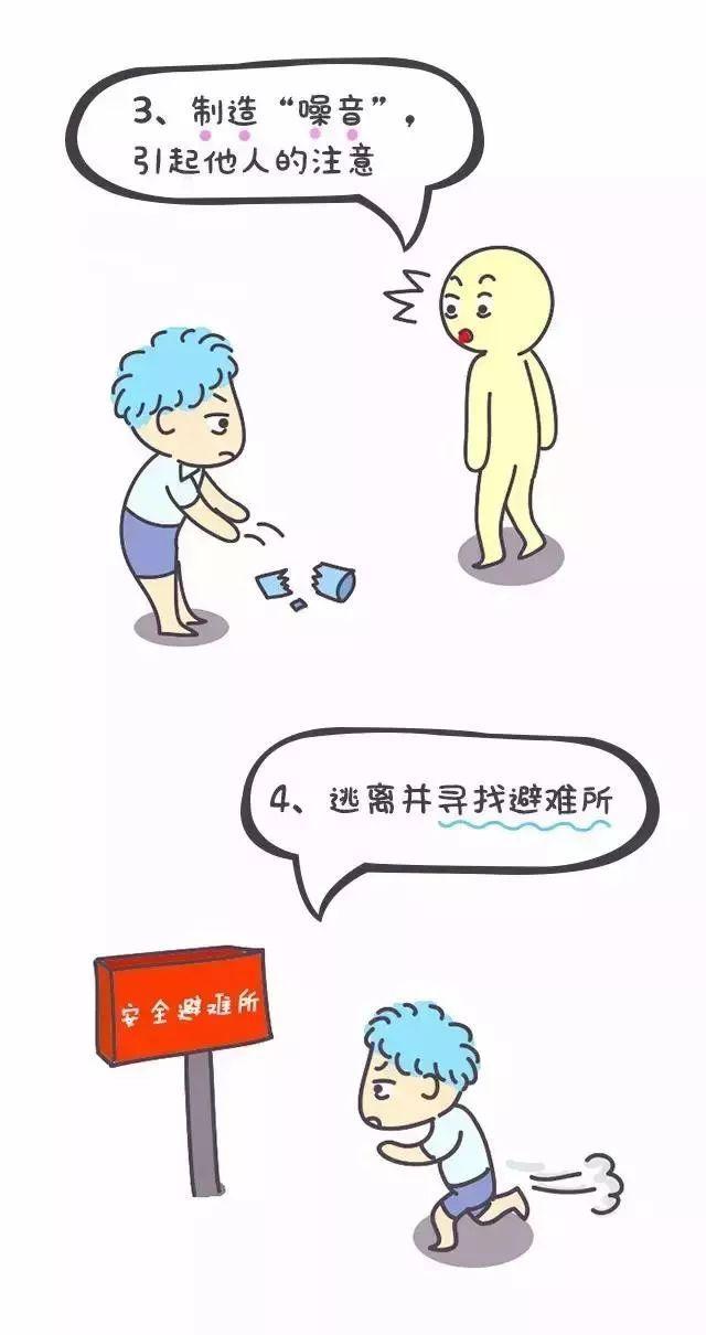 感觉到危险就立刻逃跑,一定要跑到人多的地方去。看到人的时候,就高声呼喊“请帮帮我”。