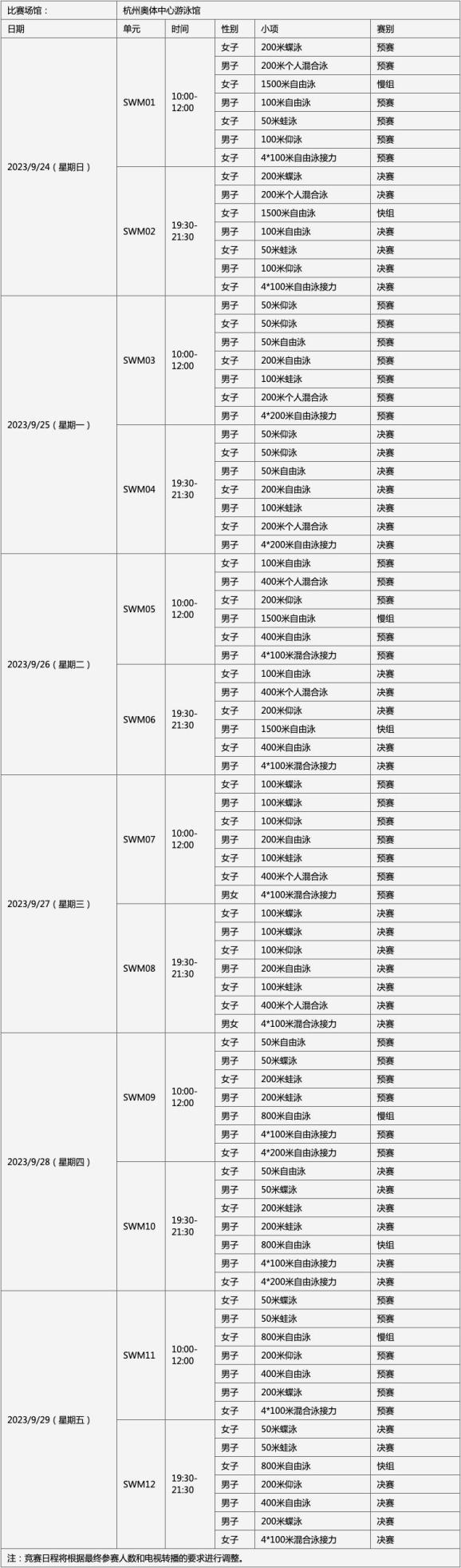游泳、乒乓球……杭州亚运会多项比赛详细赛程公布!赛事日期、地点快收好→