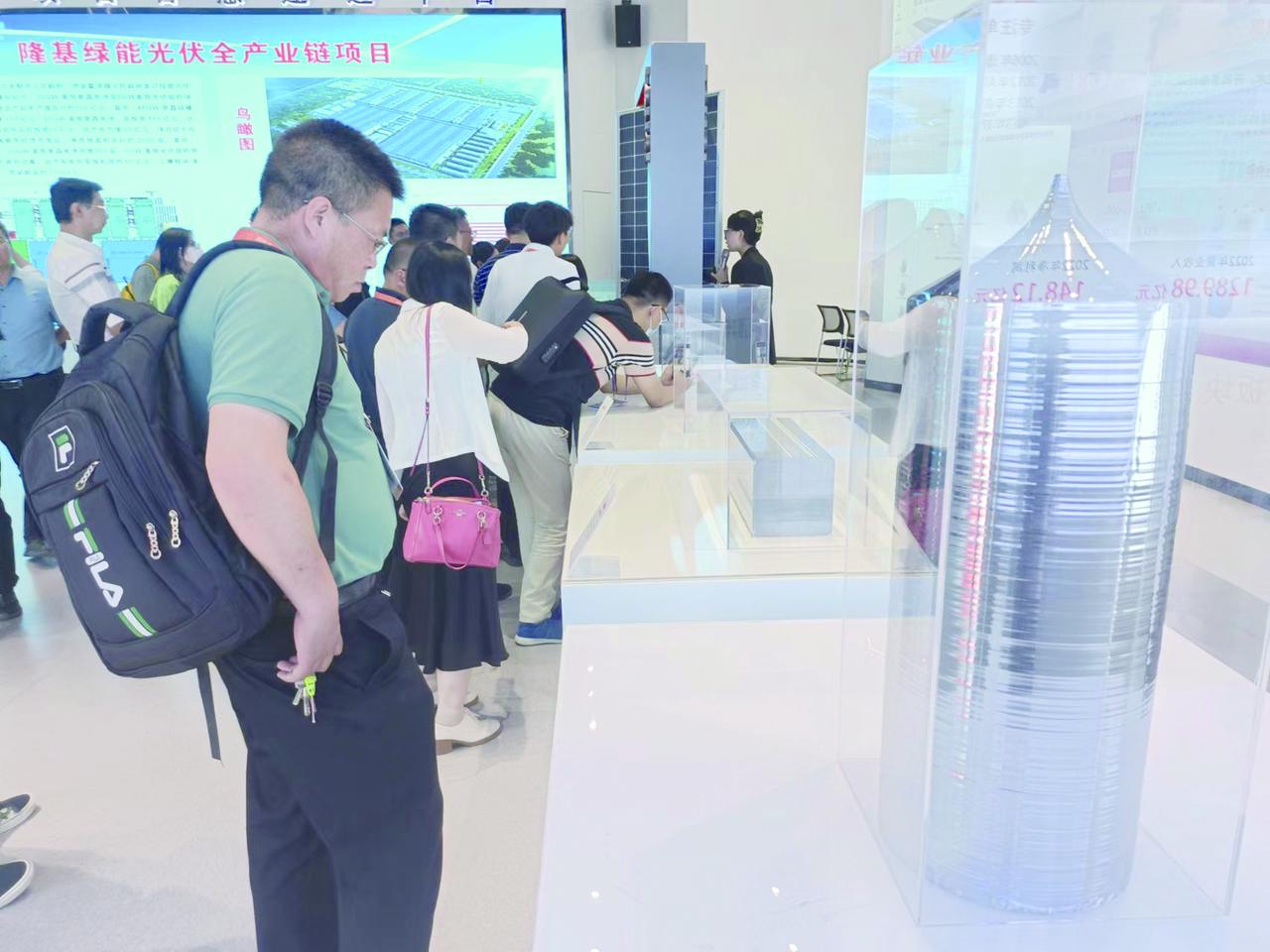 与会人员在参观企业展示的单晶硅圆棒风光储多耦合是发展新方向