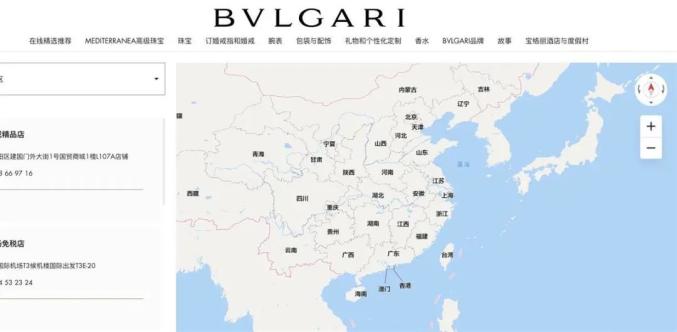11日下午,记者登录宝格丽中国官网发现,店铺地址查找一栏中,地图中列明了海南、广东、台湾、香港、澳门等多个省市区。