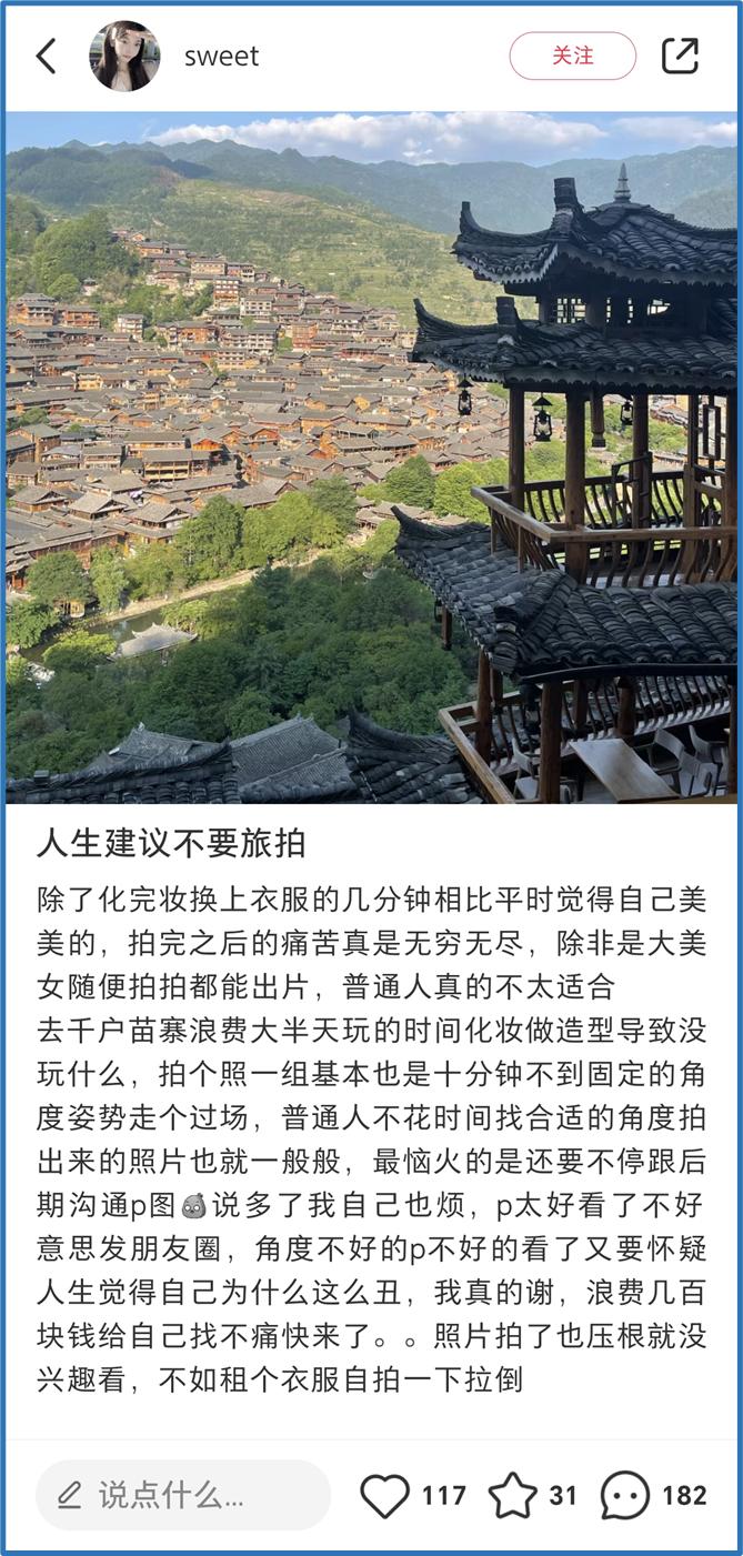 △网友分享旅拍踩雷的经历。/微博正常情况下,拍摄时,摄影师应该根据不同客户的情况和个人风格,调整角度和构图;后期也需逐张精修。这个过程,需要大量时间和精力的投入。