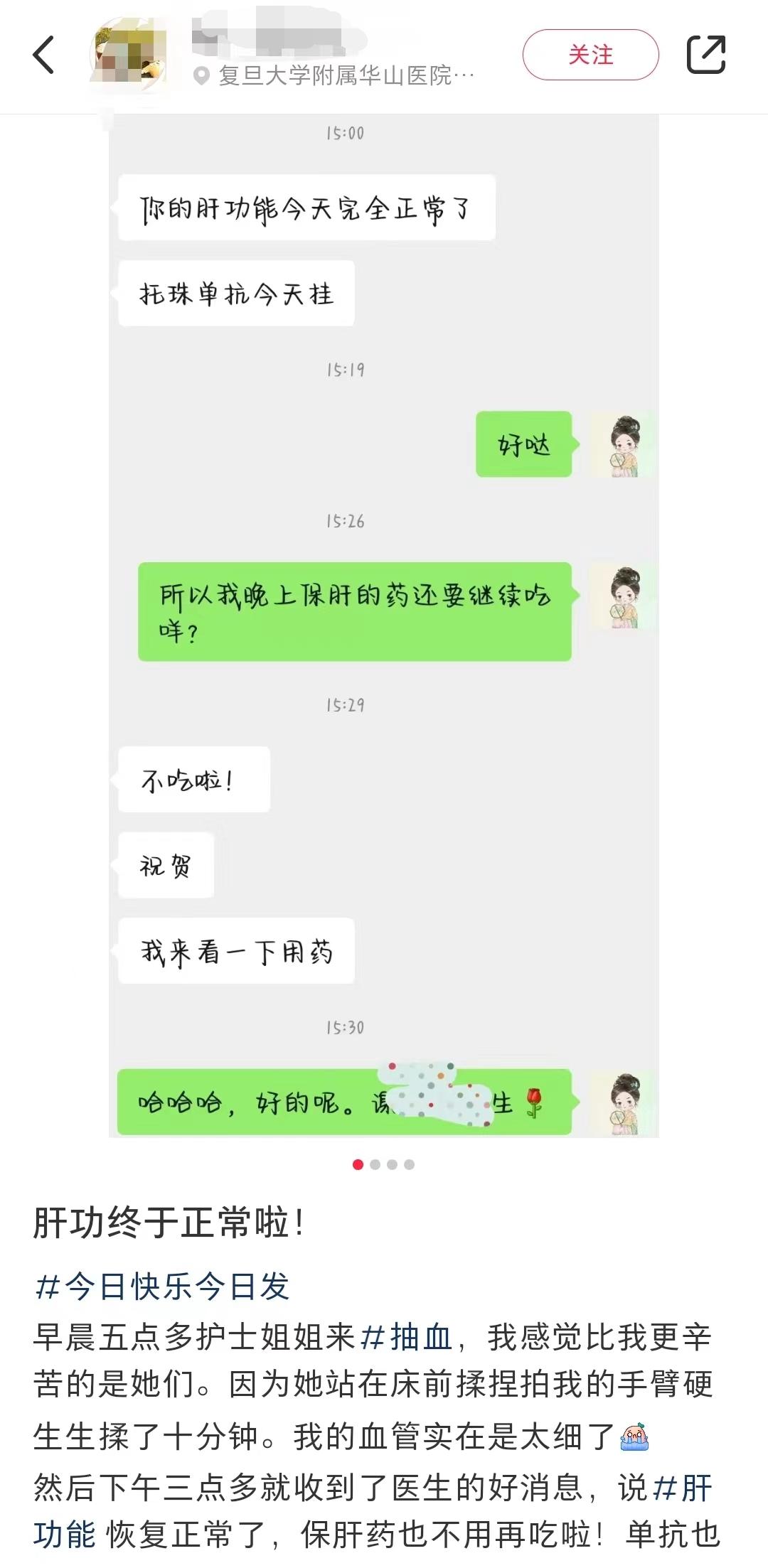 我现在能满怀感激地写下这篇文字,还要多亏华山医院的诸多医护人员,是他们一次又一次的努力,一天又一天的关心,才挽救了我年仅二十五岁的生命,给予了我恢复正常生活的希望。若说感谢二字,唯恐太轻。便化为祝福吧,祝愿他们好人一生平安,身体健康,欢愉胜意,万事可期!