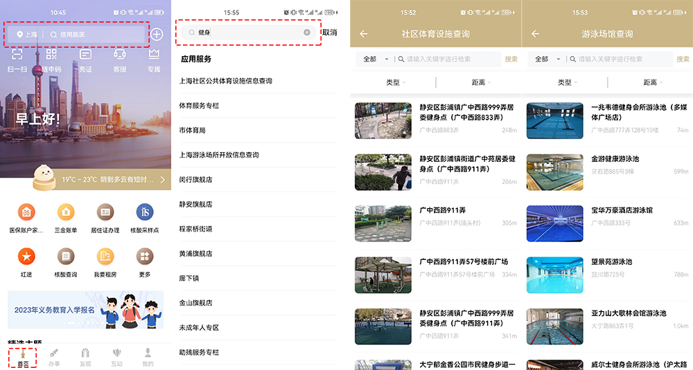 附近的健身场所、游泳场所开放信息……上“随申办市民云”APP都可查