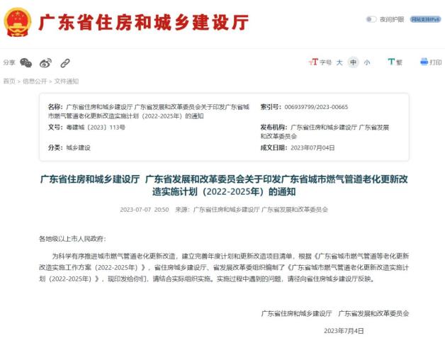 《广东省城市燃气管道老化更新改造实施计划(2022-2025年)》