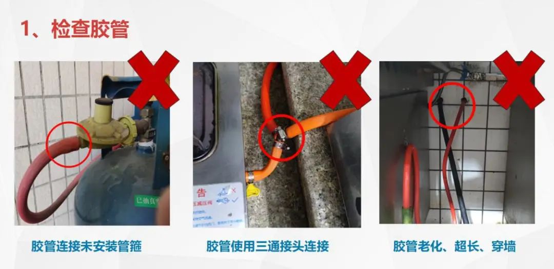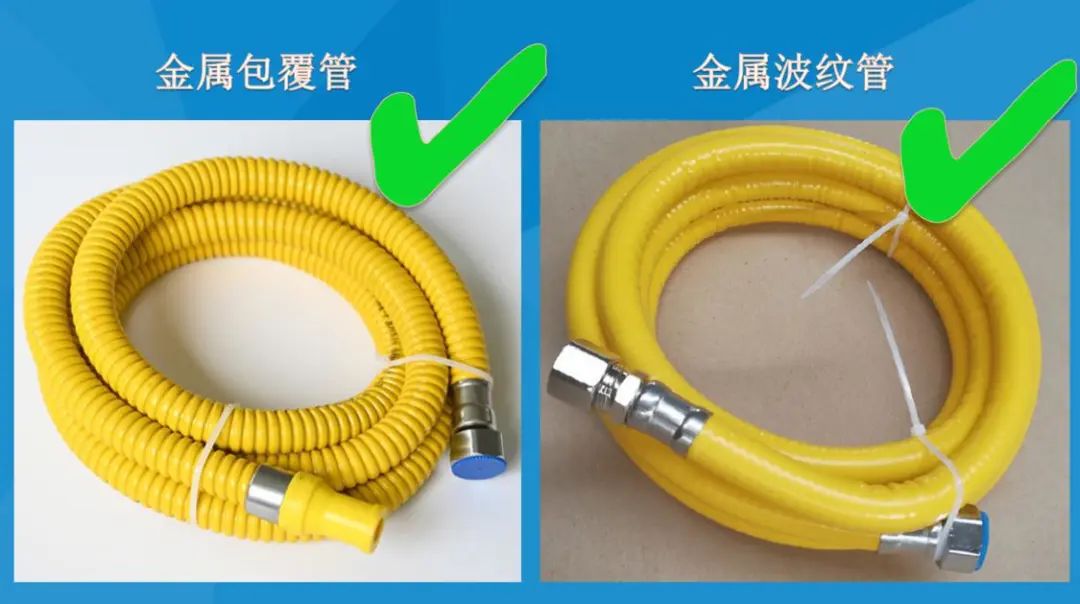普通胶管使用一段时间后有可能出现老化、开裂等现象以致漏气,存在较大的安全隐患;即便不存在以上问题,胶管还有被老鼠咬坏的风险。使用金属包覆管/金属波纹管可较好地规避以上风险。此外,使用胶管还不得穿墙、超长(不能超过2米)、使用三通接头连接(即软管不能有分叉接口)。