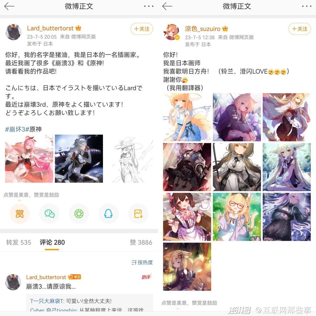 包括但不限于关注用户情绪反馈及时安利国内画师、不遗余力地向海外画师递橄榄枝、甚至“误伤”到长期在日本活动的国内画师。