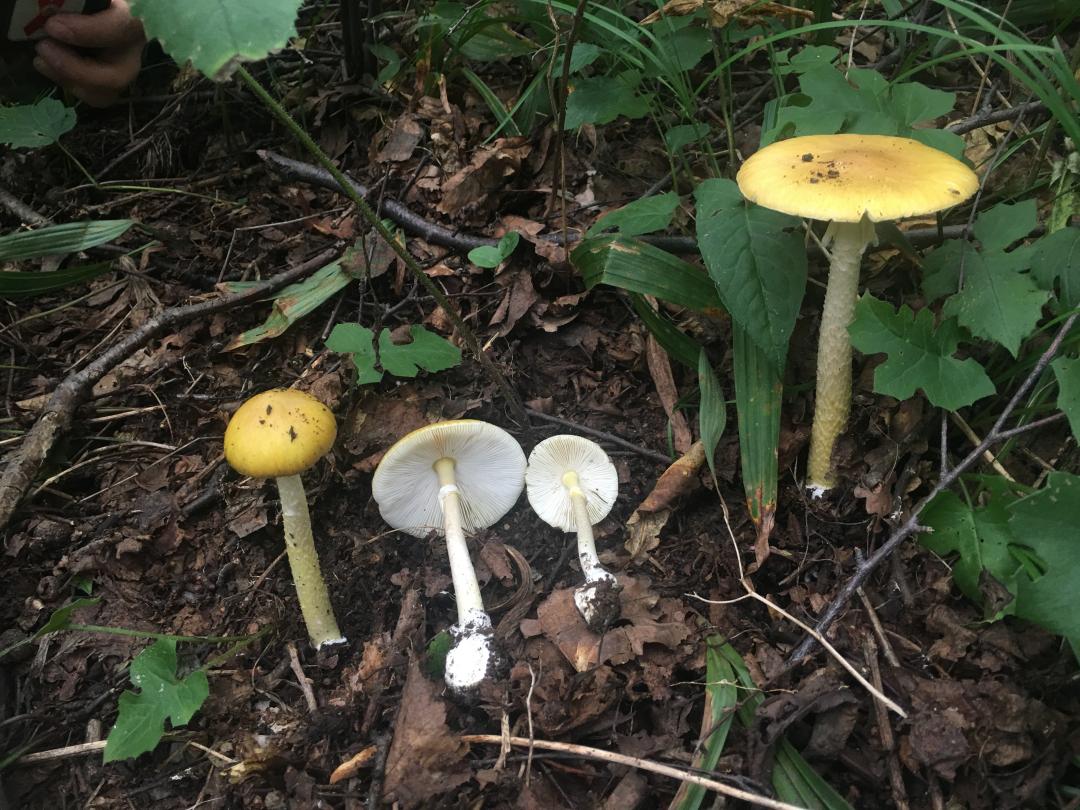 毒菇档案:黄盖鹅膏是本市最危险的毒蘑菇!它“头戴金盔(黄色菌盖),身披金甲(黄白色菌柄),腰系白裙(菌环),足蹬战靴(菌托)”。作为剧毒鹅膏中唯一一个黄色的物种,黄盖鹅膏长得“金光闪闪”,但却含有鹅膏肽类毒素,与剧毒的肉褐鳞环柄菇一样可以造成急性肝损害型中毒,严重者可以引起死亡。