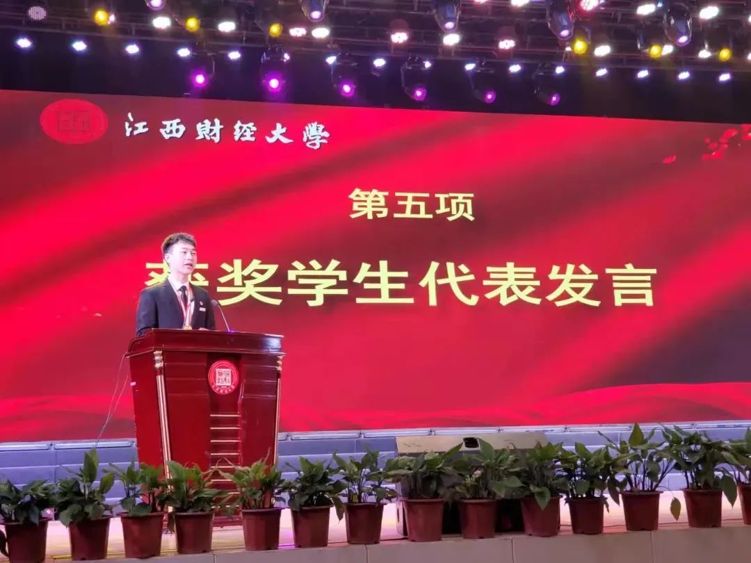 汪伟健荣获校长奖学金后作为获奖代表发言现在,他为期一年的支教工作即将结束,在他所教授的六年级学生的毕业典礼上,成功实现了当初定下的目标,向支教学校城关第二小学捐赠“天行健”励志奖学金5000元。