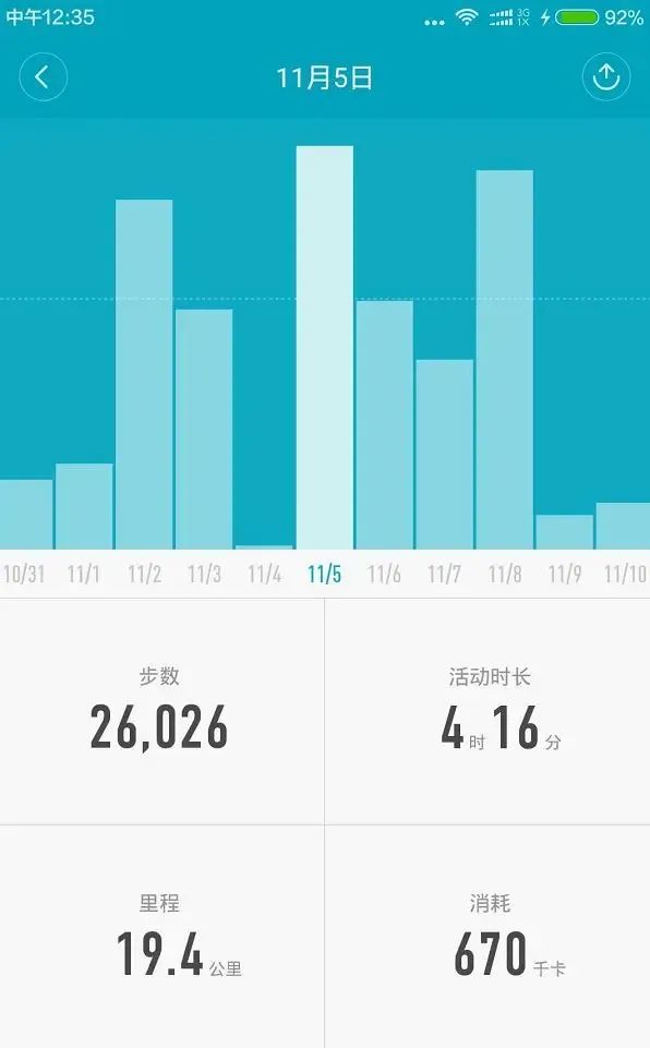 现阶段因为没有时间,因此里程也通常会控制在 20km 之内,有近期手环数据为证:
