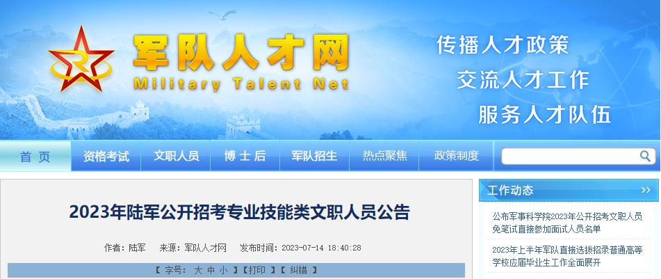1.公布招考信息。陆军通过军队人才网,向社会发布招考岗位相关信息。