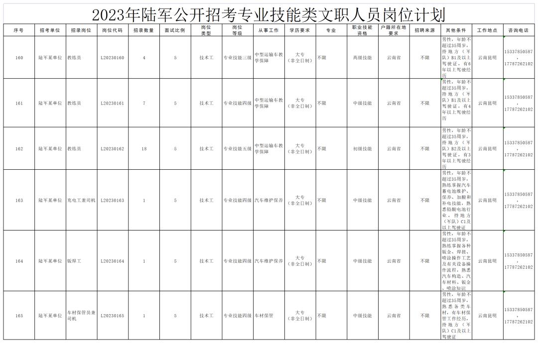 招考岗位陆军所属用人单位的教练员、保管员、修理工、出纳、卫生员、司机等专业技能三级以下岗位,共招考1873人。