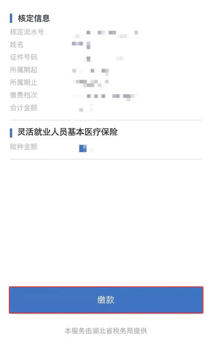 ◉ 确认核定金额、核定所属期起止无误后点击【缴款】,选择缴款方式后完成缴款即可。