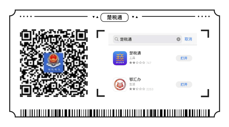 ◉ 手机扫描楚税通APP二维码,或者在应用商城搜索“楚税通”,下载安装。