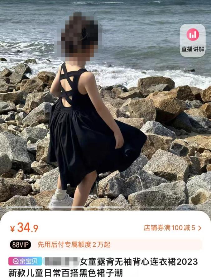 “重磅小心机露背连衣裙,2023新款”……单看这些文字,正浏览商品的河南省南阳市的年轻妈妈赵女士并没感到不妥,但当仔细看商品详情时才发现,这原来是一款“儿童日常黑裙子”。