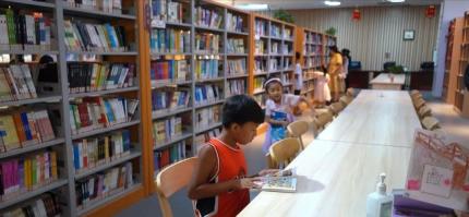 “古诗配画”活动中,孩子们拿起画笔,描绘一幅幅诗意画卷,领略古诗词的优美意境,感受古诗词别样魅力。在图书馆里,家长和孩子们拿起自己爱读的书,在浩瀚无垠的书海中酣畅阅读,“阅”享夏夜的惬意与美好。