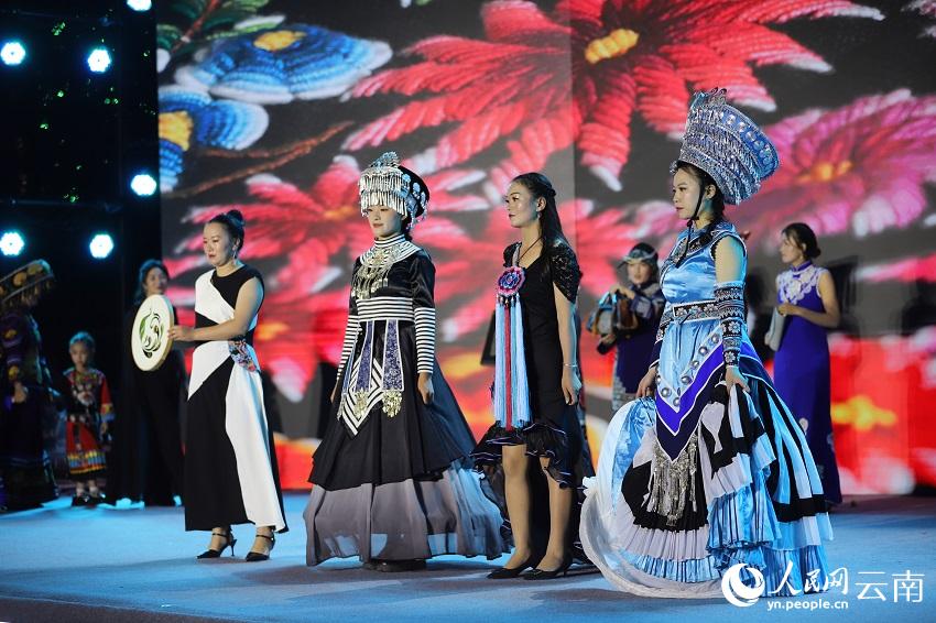 模特在展示彝族服饰及彝绣文创产品。从一个产业到一个品牌