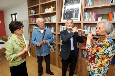 许国屏为社区居民教授笛子吹奏方法最神奇的是,这位搞民乐的艺术家,为了让更多的孩子能够接触和爱上民乐,硬生生把自己“逼”成了发明家,以一己之力发明了“多功能笛”,在上世纪八九十年代风靡全国,几乎所有的在校学生都人手一支——那支洁白轻便、简单易吹又可以千变万化的小小“魔笛”,应该是很多80后首次接触民乐器的集体回忆吧。许国屏发明的“魔笛”由塑料制成 ,管身以六孔为基础,另有五六种笛头可以任意装卸调换。而随着转动管身,簧片的振动方式不同,音色顿异,一根小小的笛子,可以瞬间变身竖笛、竹笛、椰笛、巴乌、箫、葫芦丝、长笛等七种乐器。