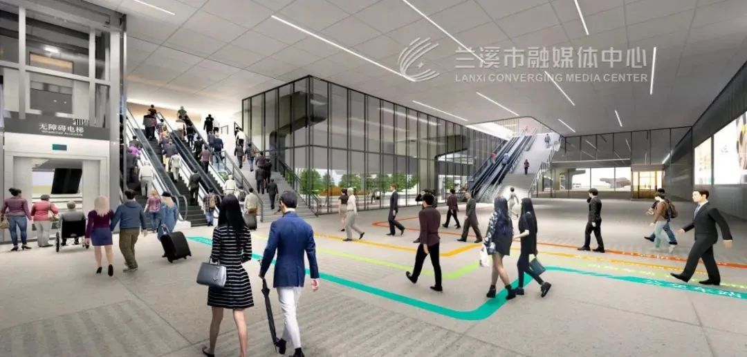 据了解,兰溪东站站房建筑面积为9999平方米,采用平进平出与地道下进下出的旅客流线组织模式。中间候车大厅面积近6000平方米,可容纳1500名乘客同时候车,两侧为车站功能用房,包含售票厅,通信、信息机房等。
